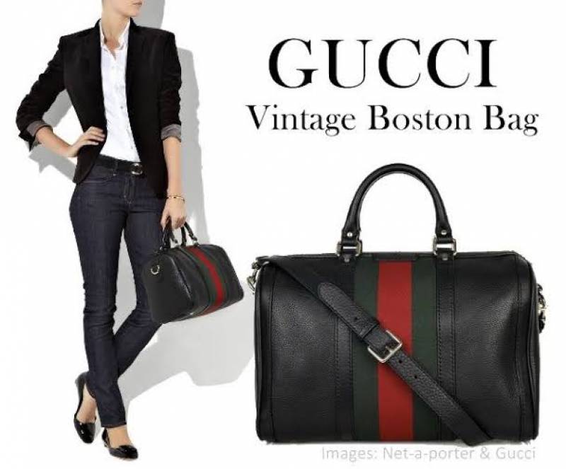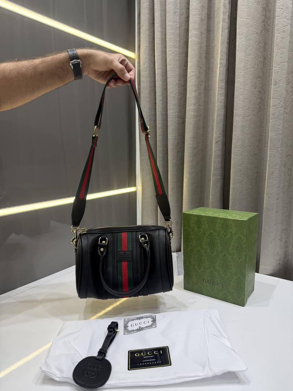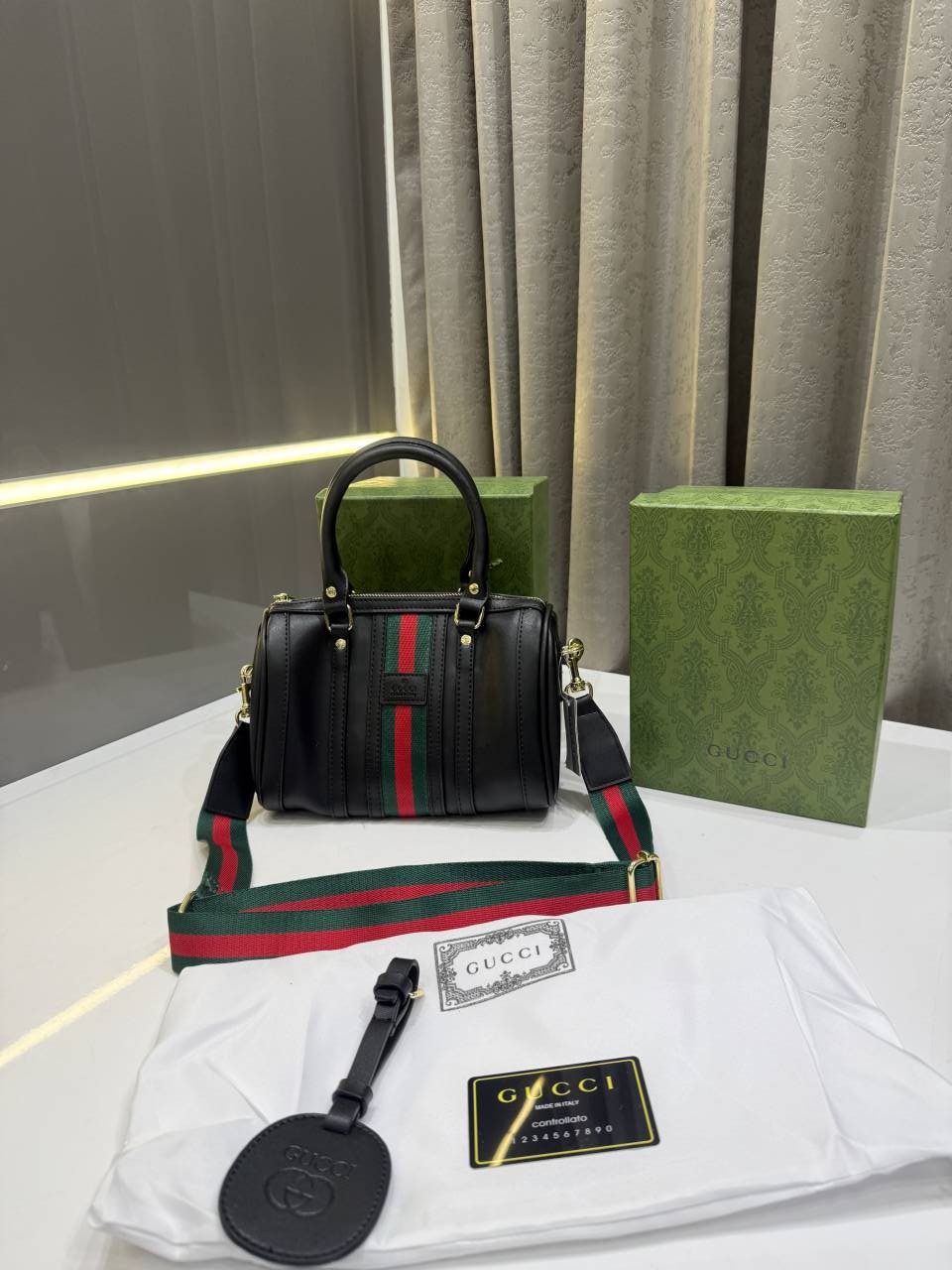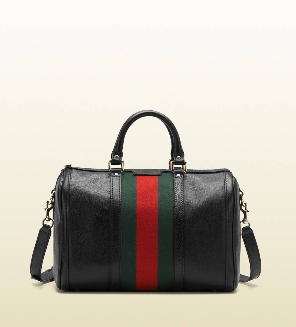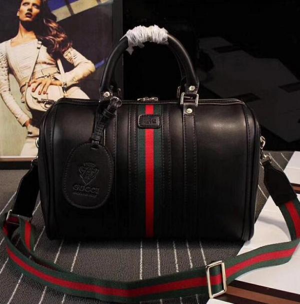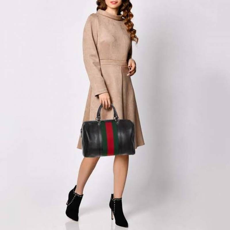 GUCC.I TAN BLACK LEATHER BOSTON BAG PREMIUM WITH OG BOX PACKING