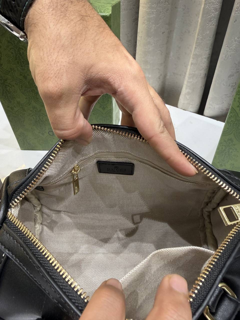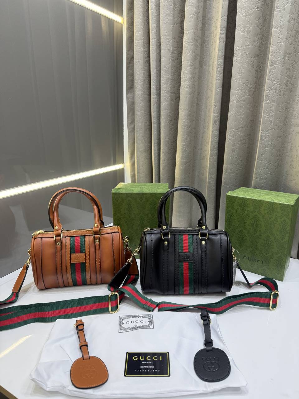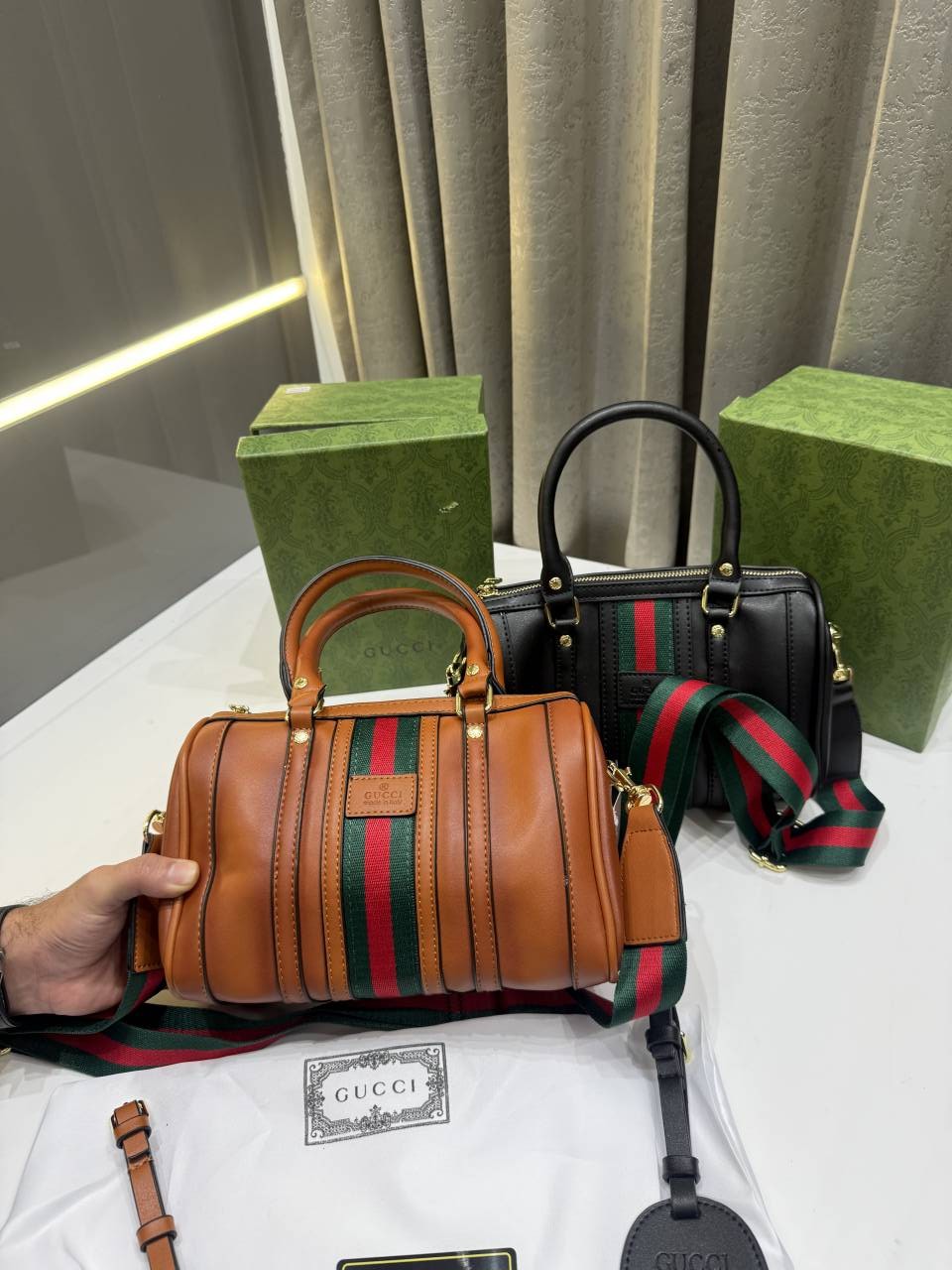GUCC.I TAN BLACK LEATHER BOSTON BAG PREMIUM WITH OG BOX PACKING