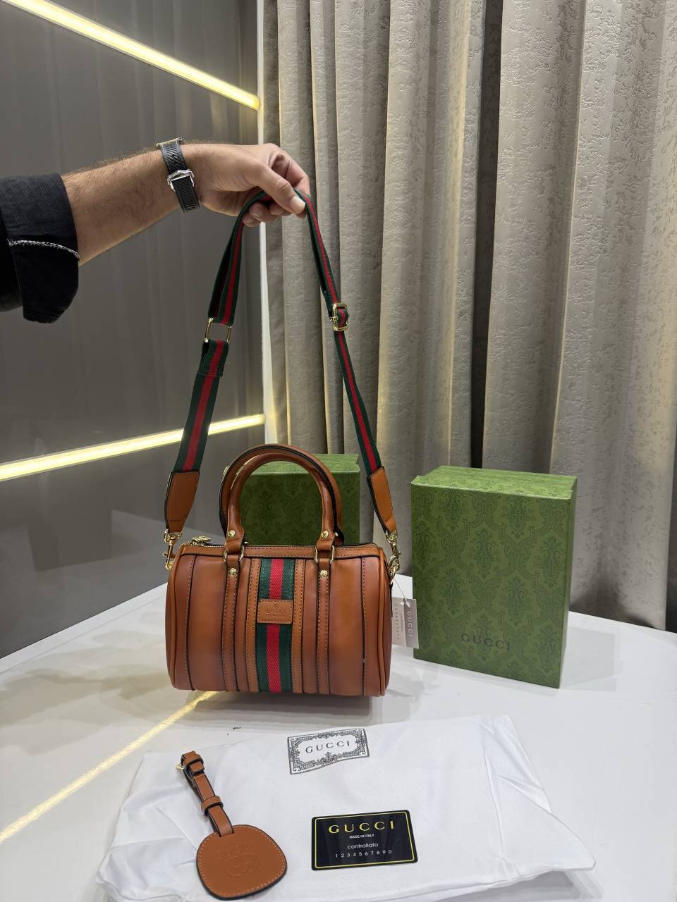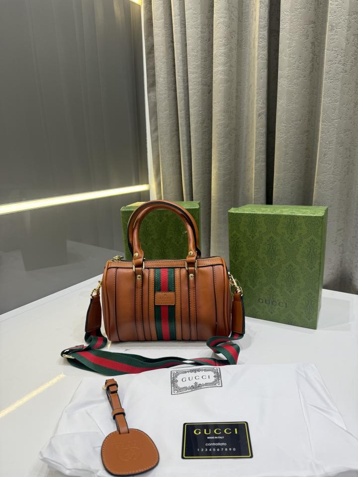 GUCC.I TAN BROWN LEATHER BOSTON BAG PREMIUM WITH OG BOX PACKING