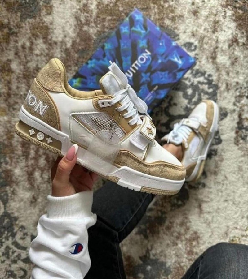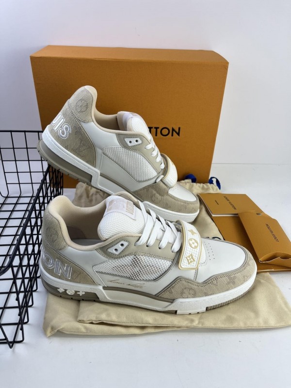 Louis Vuitton Monogram Trainer Stripe Beige White Sneaker