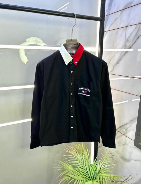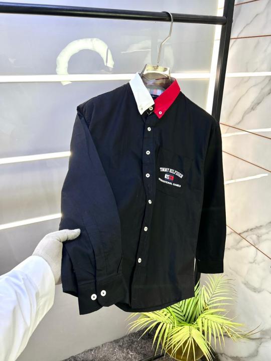 Tommy_Hilfiger Black Embroidery Logo Oxford Lycra Premium Shirts F2626-BL